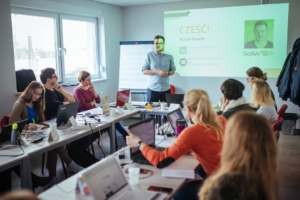 Drugi moment to sytuacja, gdy grupa jest aktywna i angażuje się w zajęcia. Wierzę, że nie ma głupich pytań, dlatego na każde staram się odpowiedzieć wyczerpująco, często podając dodatkowe materiały, które pozwolą kursantom jeszcze bardziej zgłębić dany temat.